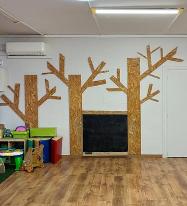 La sala se alquila por franjas horarias estándar o especiales; seguro que podemos ofrecerte el horario que mejor se adapta a tus necesidades. Han sido diseñados para crear un ambiente idóneo tanto para fiestas infantiles como para reuniones familiares, con personas de todas las edades. Por ello, se ha optado por una decoración basada en la madera, los textiles, la iluminación cálida y detalles de césped artificial.